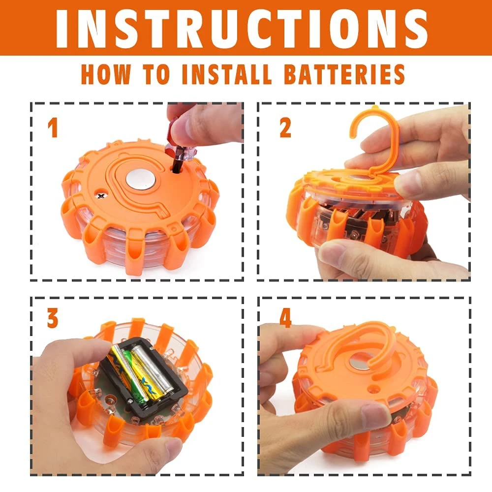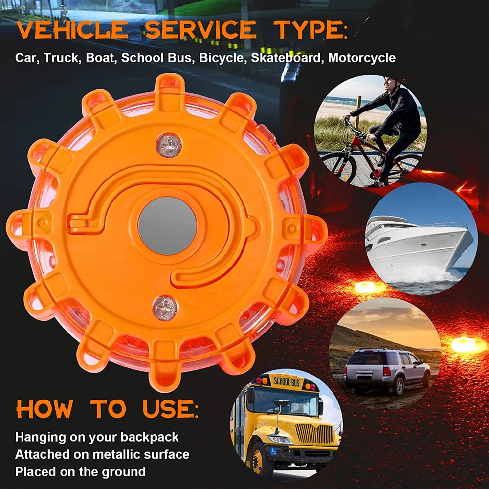 15LED Emergency Roadside Safety Flares Light Road Magnetic Strobe Warning Light Flashlights Rescue Light Orange Car Beacon Lamps