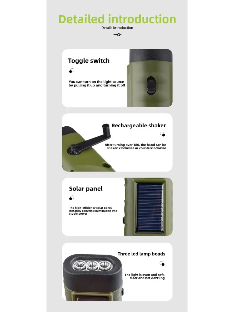 3-In-1 Solar Hand Crank Flashlight - 500LM LED with USB Charger for Camping Emergency Power Outages