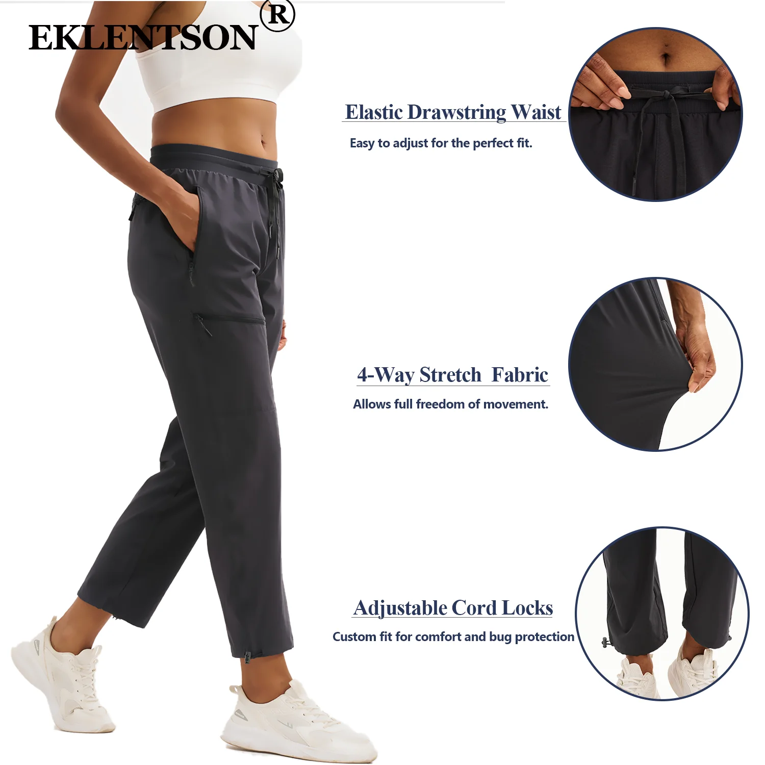 Discover the perfect blend of comfort and functionality with the EKLENTSON Women's Lightweight Quick-Dry Hiking Pants. Designed for outdoor enthusiasts, these pants are ideal for hiking, camping, and travel. The UPF 50+ fabric effectively blocks harmful UV rays, ensuring your skin is protected during sunny excursions. With a quick-dry feature, you can stay dry and comfortable even in wet conditions, making them an essential choice for unpredictable weather. The adjustable waist and ankle design allows for a custom fit, providing both comfort and protection against insects.