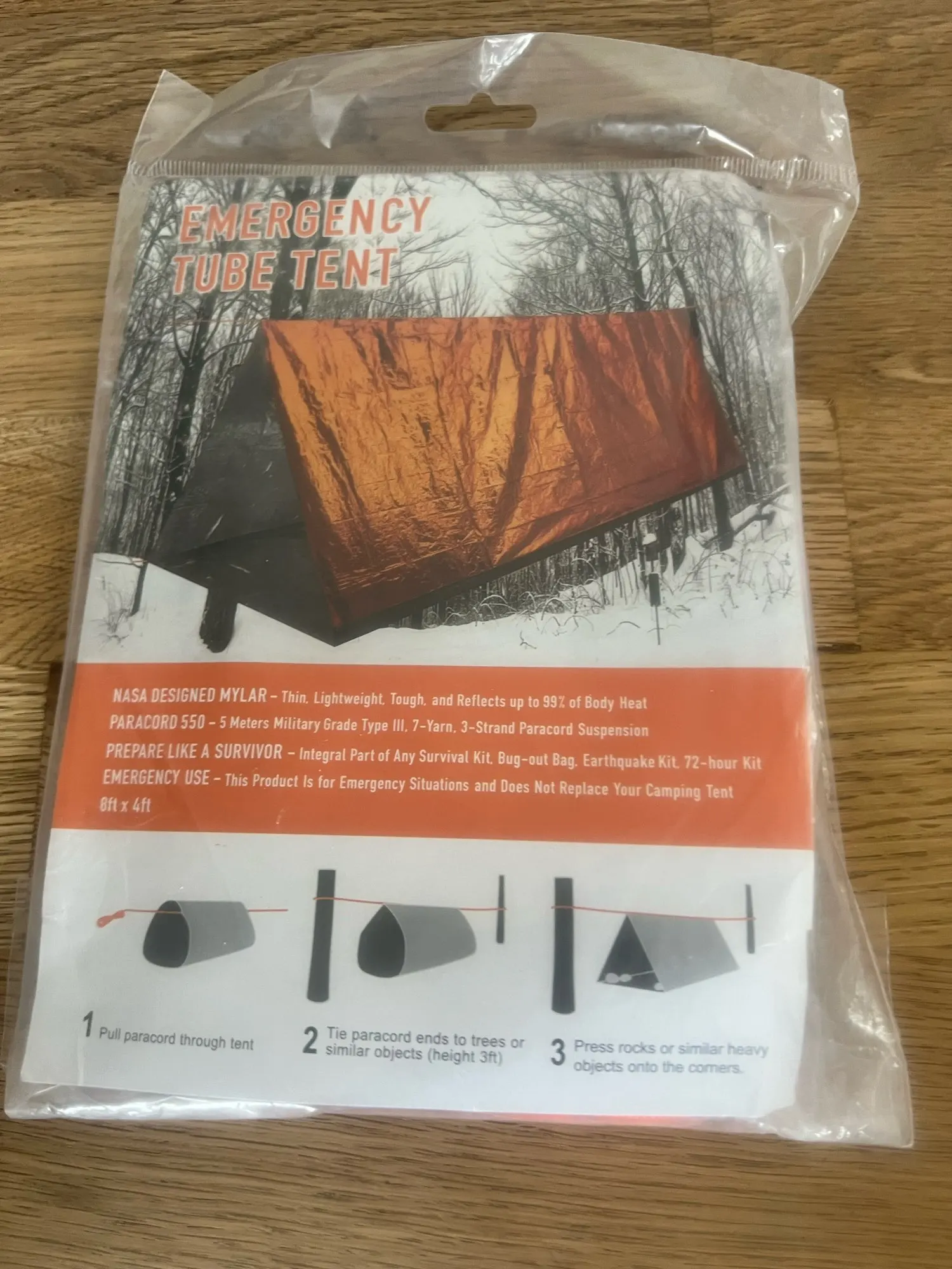 Quick Set-Up: Our wind resistant and waterproof emergency tube tent sets up fast; just run the 20 feet paracord through the tent and tie it up between two trees, then use rocks or gear to anchor the corners, and climb in. Instructions are included in each bag. If no trees are available, the 8x5 foot emergency storm shelter can also be used as an emergency sleeping bag, blanket, bivvy bag, or bivvy sack.