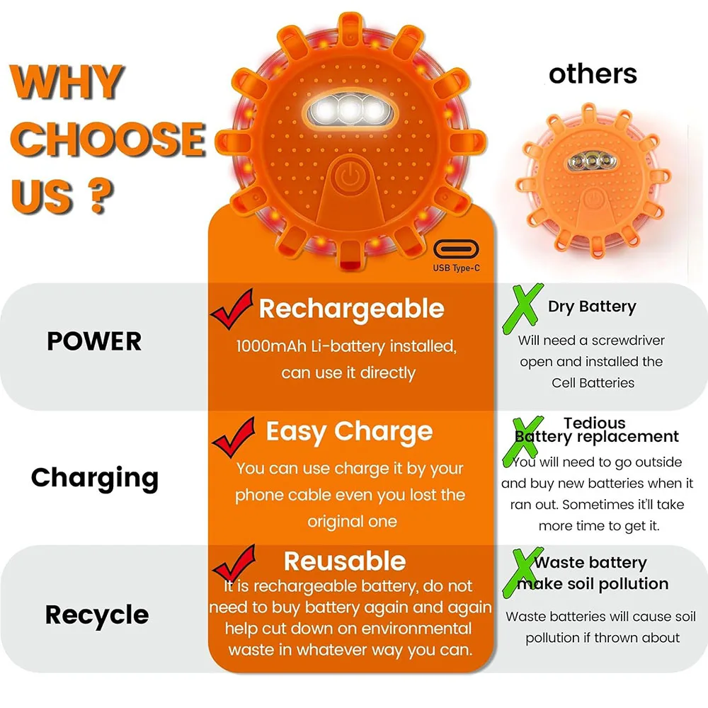 1. LED Road Flares with Superior Visibility: Up to 1 mile visibility. The Warning Flashing Beacon would be the best road safety backup.
