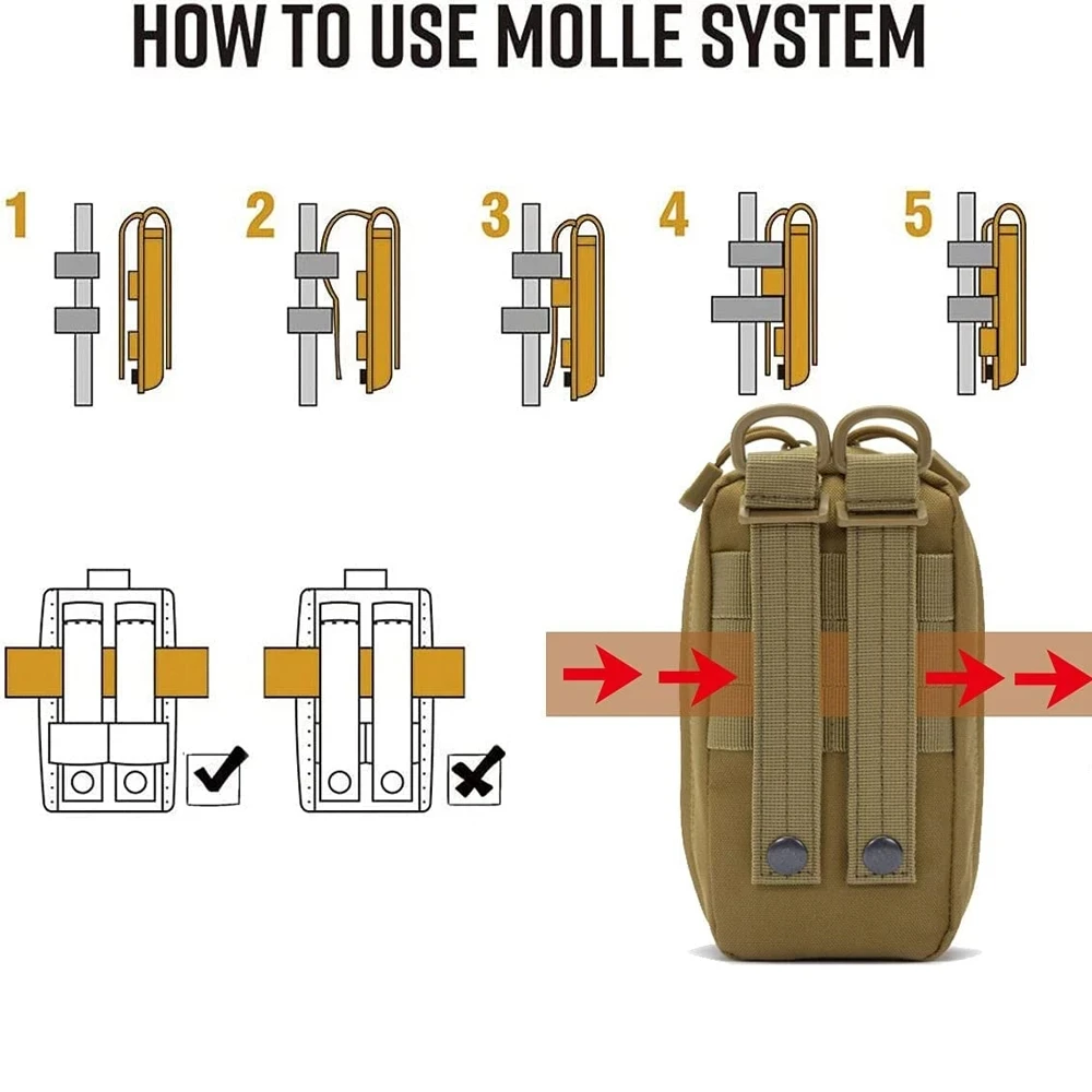1.Size:5.9 "x8.3 "x4.3", large capacity with multiple pockets and compartments that allow you to store a large number of molle first aid kits.