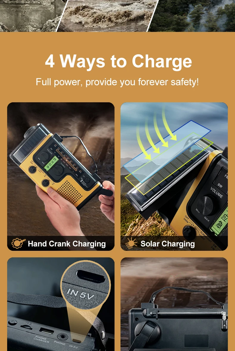 Stay Prepared with the Ultimate Emergency Multi-Powered Survival Radio: Solar & Hand Crank Dynamo with NOAA Weather Alerts and USB-C Charger for Outdoor Adventures and Crisis Situations