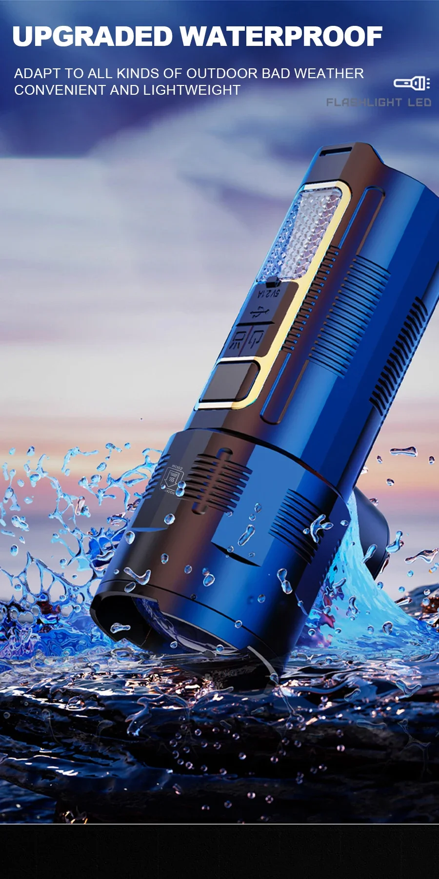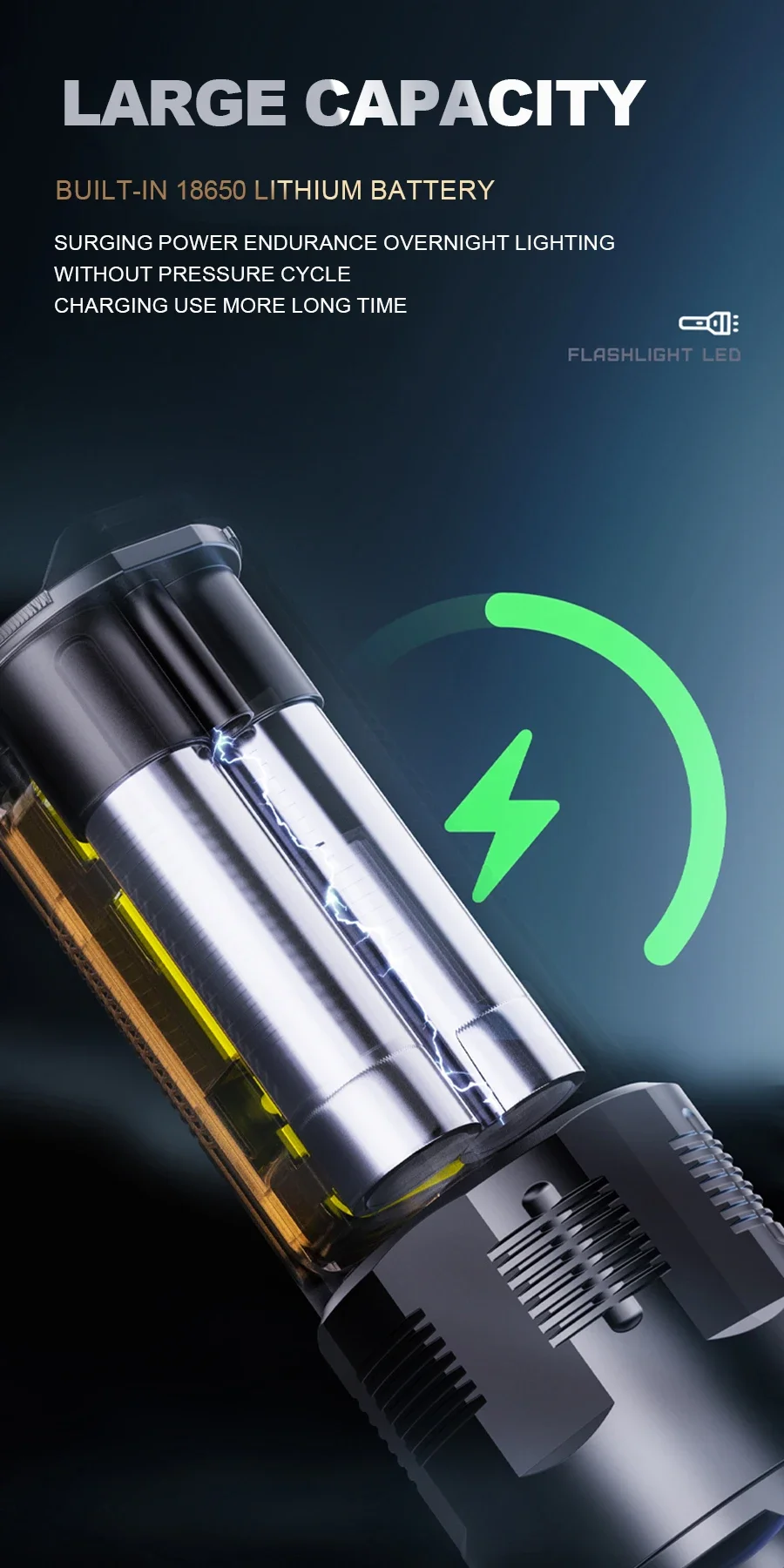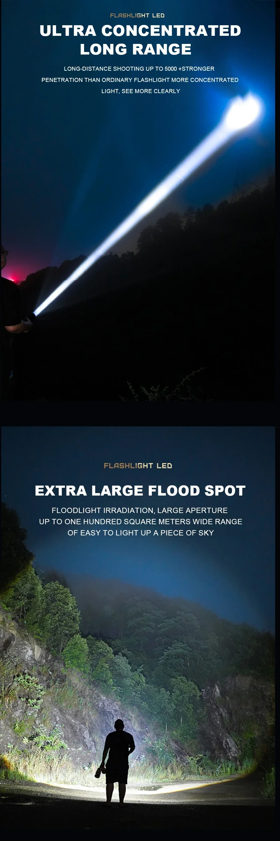 Super Bright LED Flashlight 300M Long Shot Type-C Rechargeable Torch Portable Spotlight 18650 Battery Lamp Power Bank Lantern