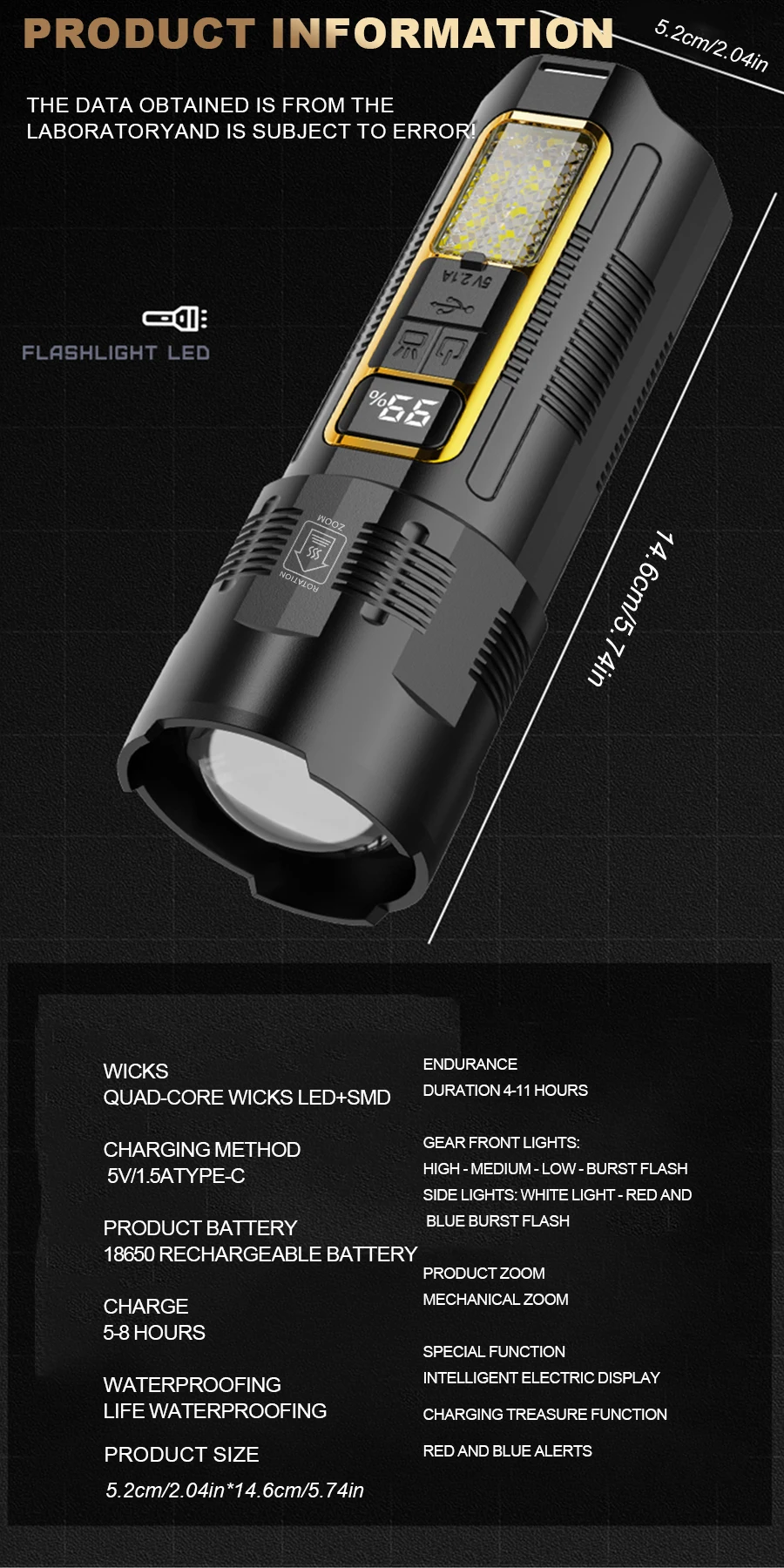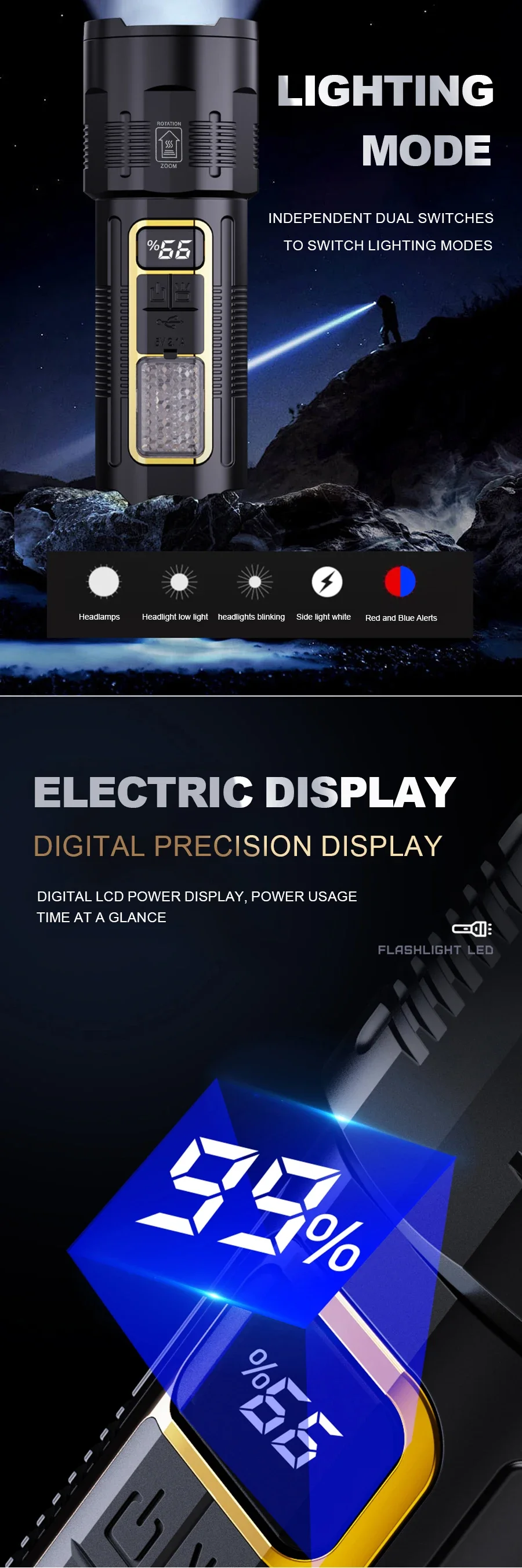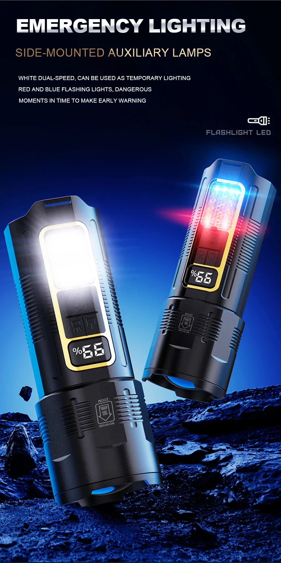 Super Bright LED Flashlight 300M Long Shot Type-C Rechargeable Torch Portable Spotlight 18650 Battery Lamp Power Bank Lantern