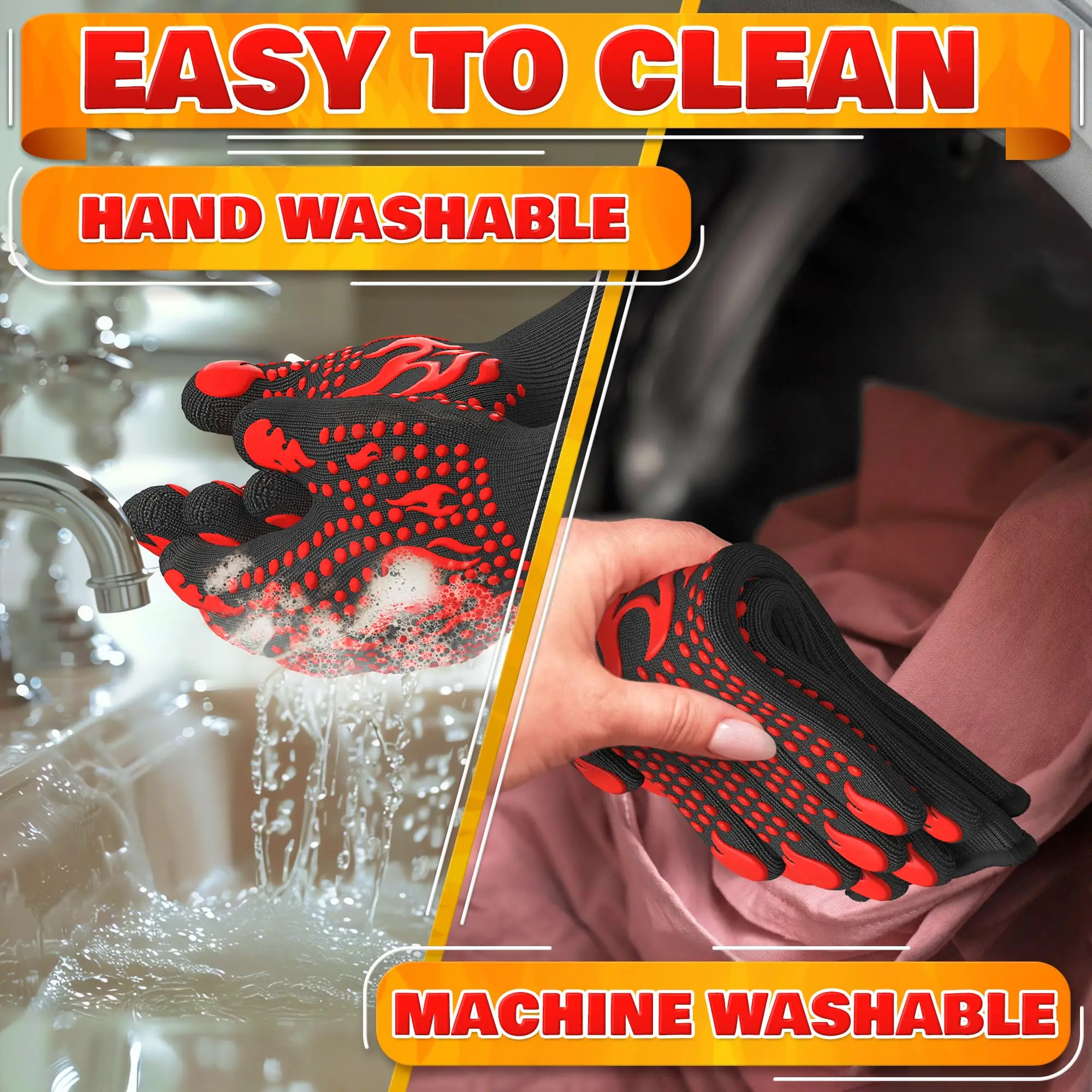The OKISS Heat-Resistant Silicone Oven Gloves are designed to provide unparalleled protection and comfort while cooking, grilling, or baking. With an impressive heat resistance of up to 1472°F (800°C), these gloves allow you to handle hot pots, pans, and grilling tools with confidence. The non-slip surface ensures a secure grip, making them ideal for both indoor and outdoor cooking activities. Whether you are flipping burgers on the BBQ or taking fresh bread out of the oven, these gloves will keep your hands safe from burns and scalds. Crafted from high-quality silicone, the OKISS gloves are not only durable but also easy to clean. They are perfect for anyone who enjoys cooking or grilling, providing the ultimate combination of protection and flexibility. The gloves can be used for a variety of tasks, including baking, barbecuing, and handling hot cookware, making them an essential addition to your kitchen or outdoor grilling setup. With their stylish design and practical features, these gloves are sure to enhance your cooking experience. - Heat-resistant up to 1472°F (800°C) for maximum protection - Non-slip surface for a secure grip while handling hot items - Versatile use for baking, grilling, and cooking - Easy to clean and maintain, ensuring long-lasting use - Comfortable fit, allowing for flexibility and dexterity while cooking